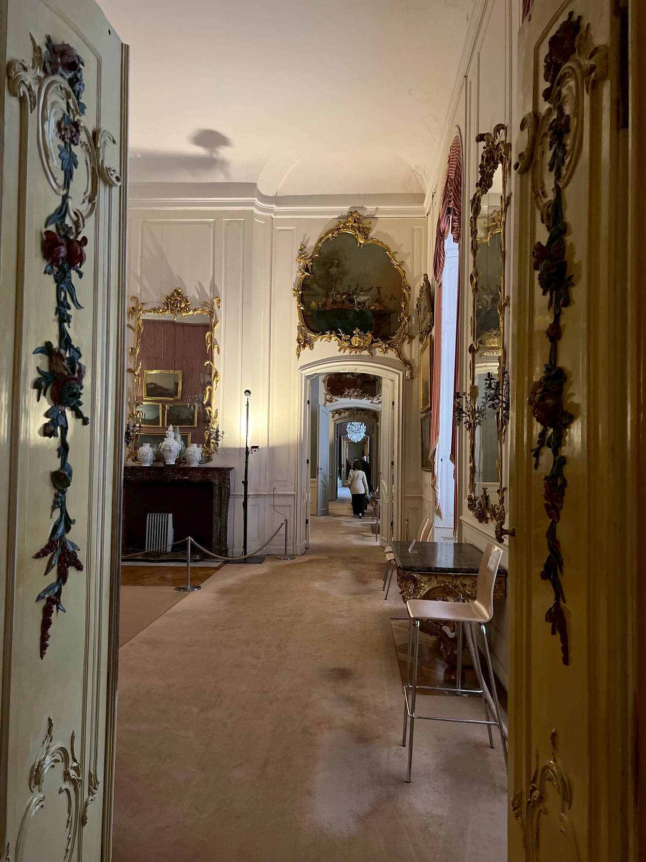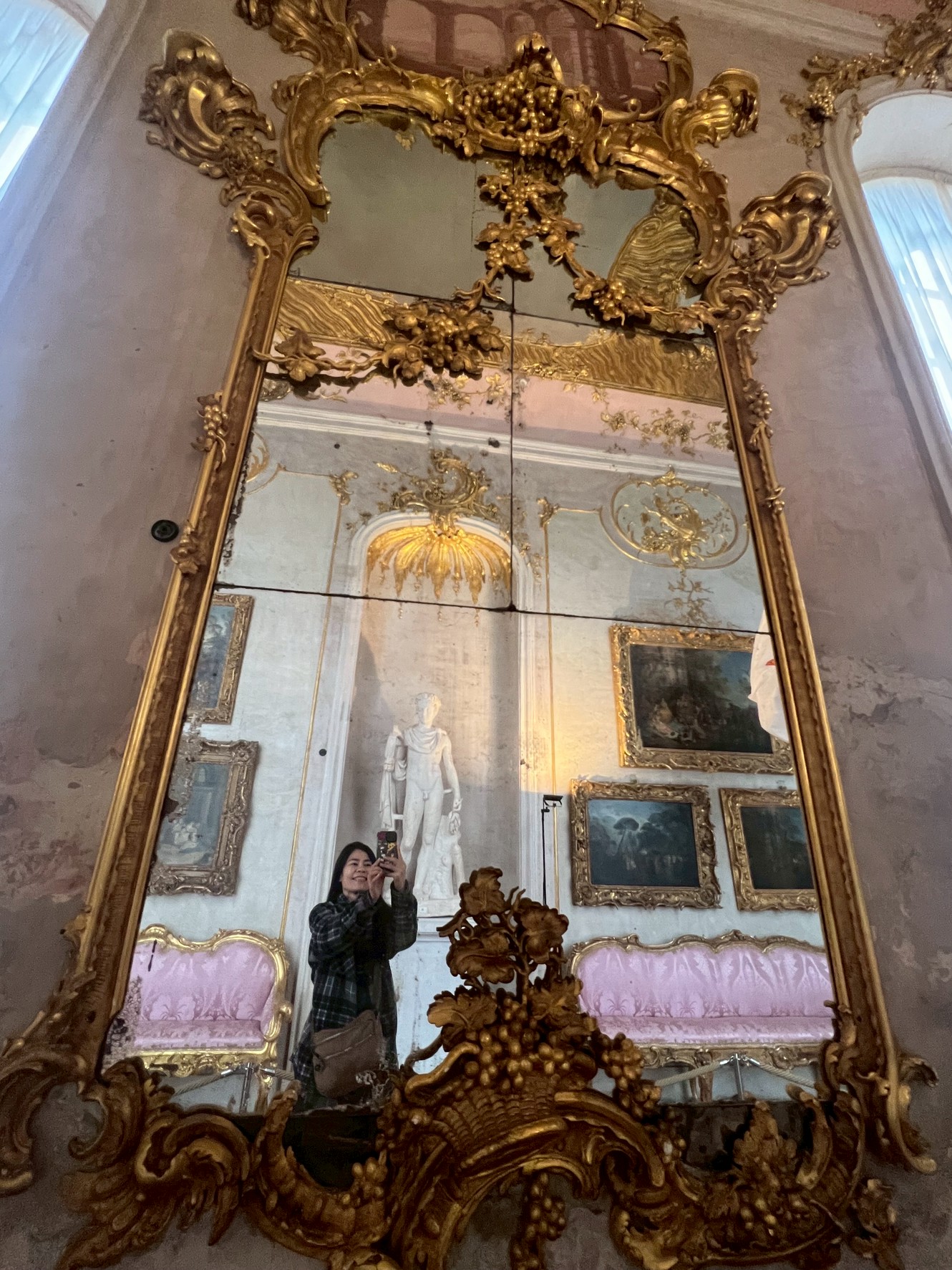 • ตัวอาคารเป็นสถาปัตยกรรมแบบ Rococo สีเหลืองทองอ่อน ตกแต่งหรูหราแต่แฝงด้วยความอบอุ่น