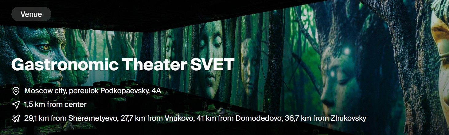 SVET Gastronomic Theater คือพื้นที่แห่งประสบการณ์ที่ไม่อาจนิยามได้ด้วยคำว่า “ร้านอาหาร” หรือ “โรงละคร” เพียงอย่างเดียว ที่นี่คือการผสมผสานอย่างกลมกลืนระหว่างศิลปะการแสดงและอาหารชั้นสูง ที่ซึ่งทุกจานอาหารมีความหมาย และทุกช่วงเวลาถูกขับเน้นด้วยเสียง แสง และโปรเจกชันรอบทิศทาง
